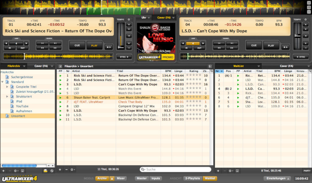 Ultramixer memiliki antarmuka profesional dan mendukung dual-display music player